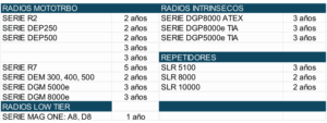 - Accesorios originales de la línea Mototrbo: 12 meses